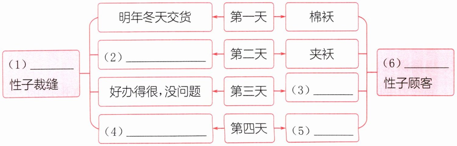 答案:五、(1)慢 (2)为您服务,没说的 (3)短袖衬衫 (4)还没开始裁料 (5)春装 (6)急