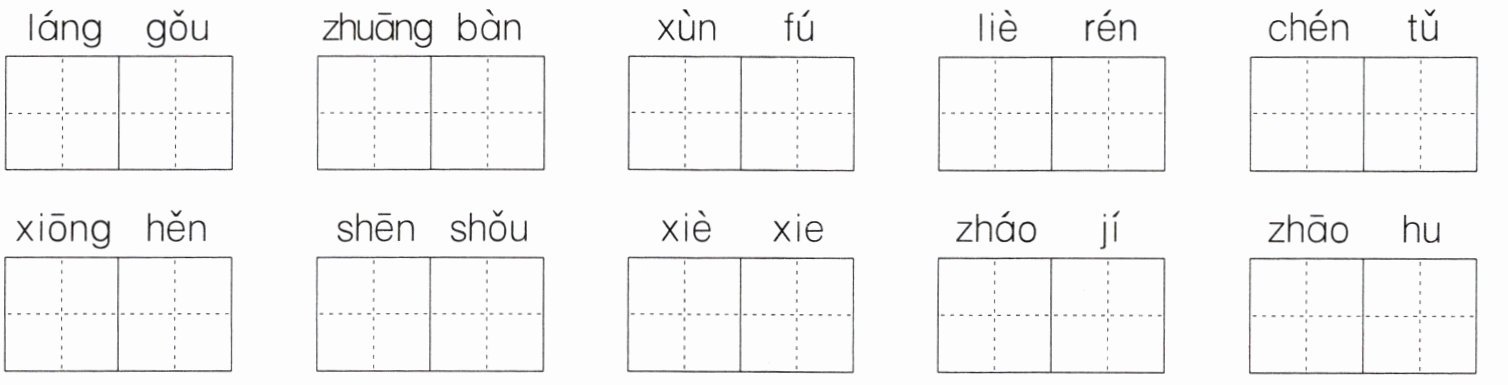 答案:三、狼狗 装扮 驯服 猎人 尘土 凶狠 伸手 谢谢 着急 招呼
