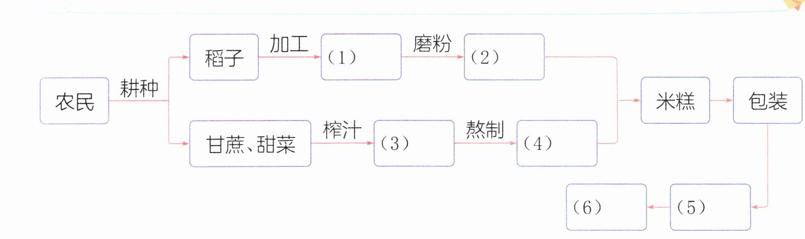 ① 糖 ② 米粉 ③ 大米 ④ 甘蔗汁、甜菜汁 ⑤ 销售 ⑥ 送货