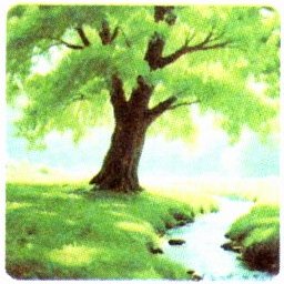 树下有一条清澈的小溪,鱼儿在里面欢快地游来游去。大家都很喜欢它,它给村民们带来了无数的快乐。