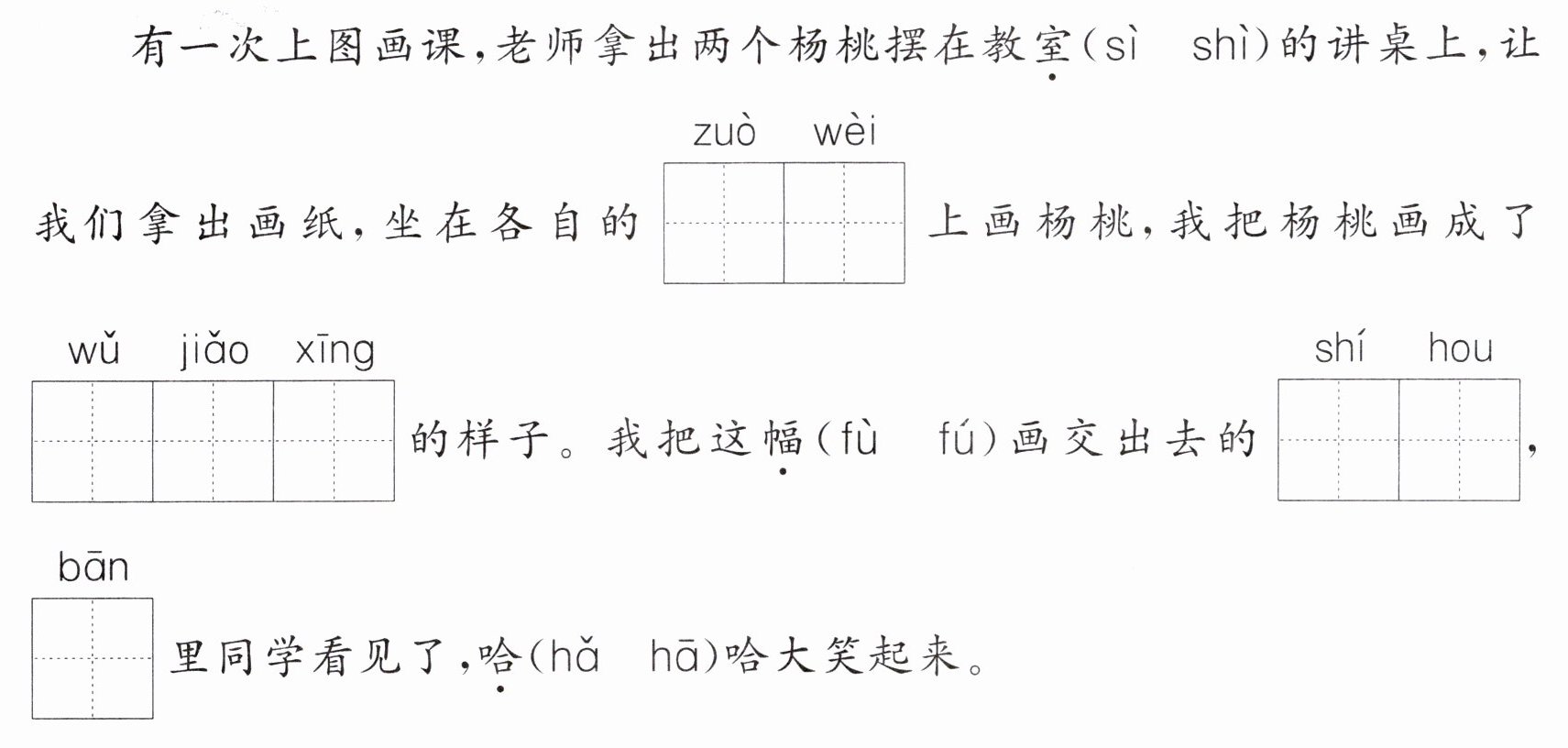 一、1. shì fú hā 2. 座位 五角星 时候 班