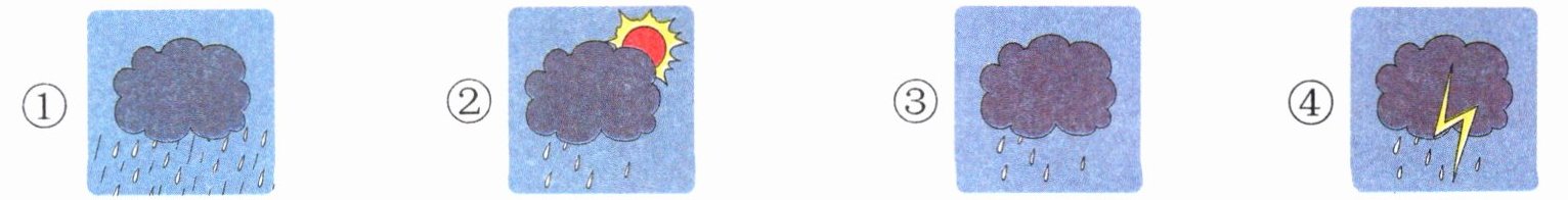 四、下列图片分别代表什么样的雨?选一选。(填序号)