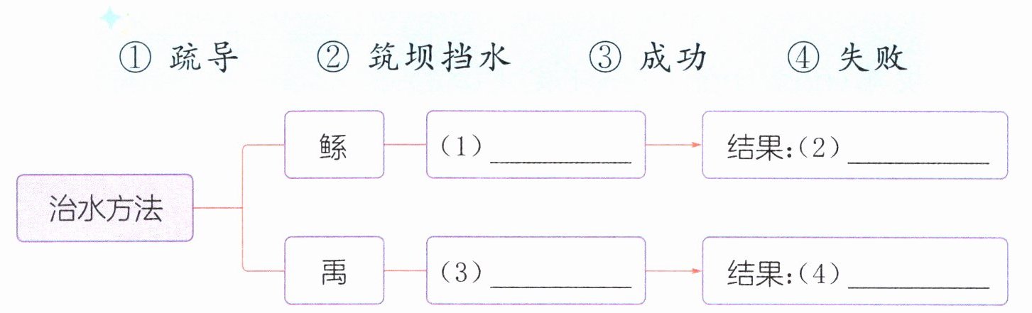 年。2. (思维导图)鲧和禹治水的方法有何不同?结果怎么样?填一填。(填序号)