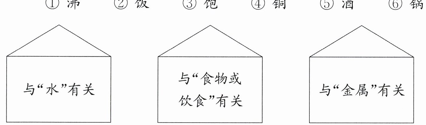 2. (语文要素)读一读,找一找文中这些形声字的特点,把相对应的汉字送回家。(填序号)(6 分)