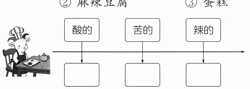 2. (思维导图)厨师小山羊把酸的、苦的、辣的分别做成了什么?(填序号)(9 分)