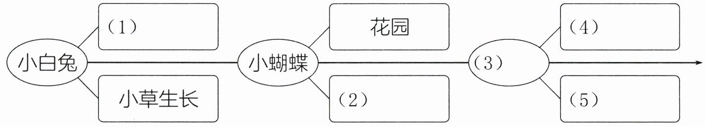 ③ 小鸟告别了小白兔,继续往前飞。它看见一只漂亮的蝴蝶,忙问道:“小蝴蝶,你好!请问春天在哪里?”小蝴蝶扇了扇美丽的翅膀,轻声地说:“你看,花园里五颜六色的花都开了,春天在花园里呀!”“谢谢你!”