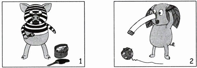 答案:示例:有一只小猪,它觉得做猪很没意思,看到斑马身上的花纹很漂亮,它便用刷子蘸着黑白颜料,将自己全身刷满黑白条纹,把自己变成了一匹“斑马”。小猪兴致勃勃地走在路上,看到像一堵墙一样高的大象从它身边走过,它觉得大象很厉害,又准备变成大象。于是,小猪在自己的鼻子上接了一根长长的塑料管,又用毛线在两只耳朵上各绑了一片大树叶。它跺跺脚,又出门去了……