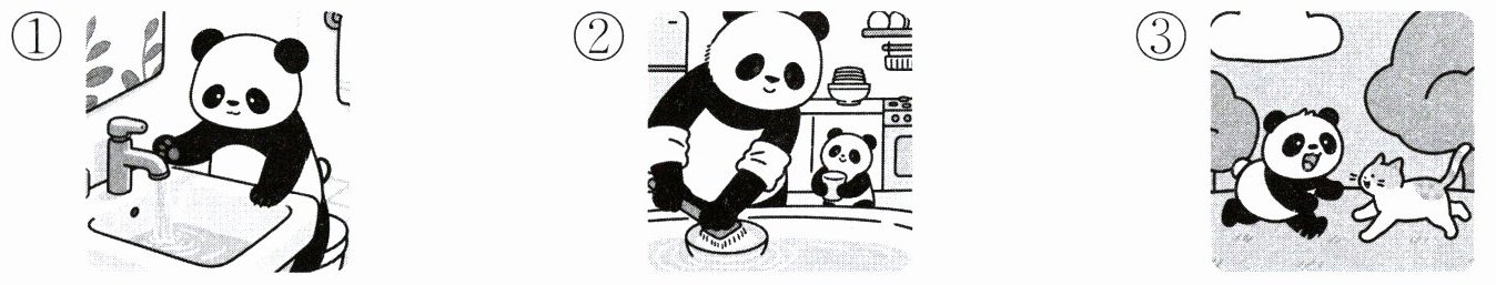 2. (思维导图)大熊猫桐桐变乖后做了哪些事?照样子,填一填。(填序号)(9 分)