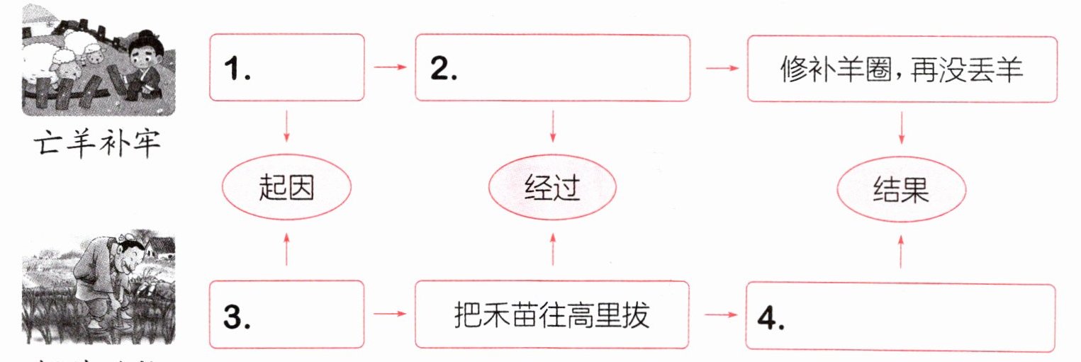 ③ 羊圈破了,丢了羊 ④ 巴望禾苗长得快