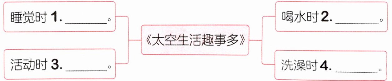 五、课文写了太空生活中哪些有趣的事情?选一选。(填序号)