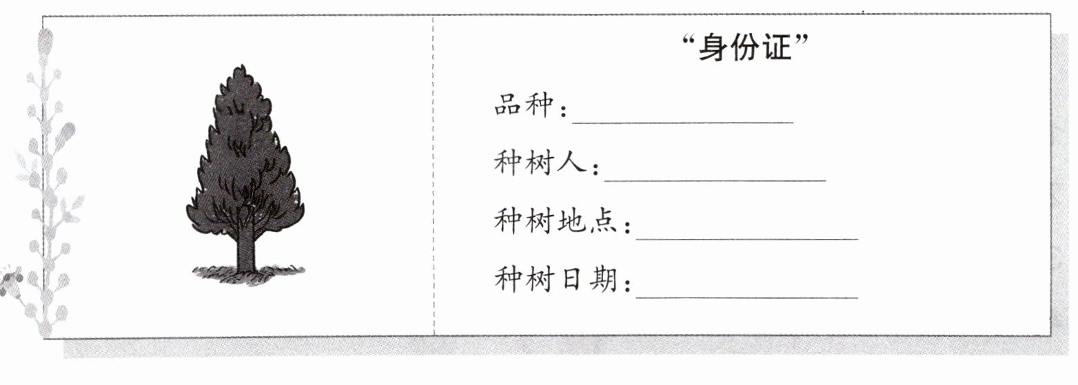 五、回顾课文内容,给文中的小柏树做一张“身份证”。