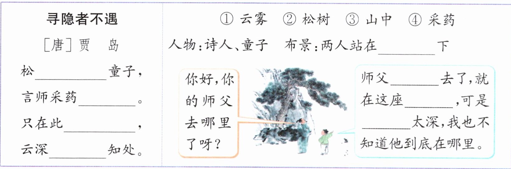 五、把《寻隐者不遇》补充完整,再改编为课本剧(填序号)。