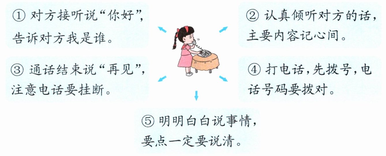 )① 说清自己是谁 ② 使用礼貌用语 ③ 把事情说清楚