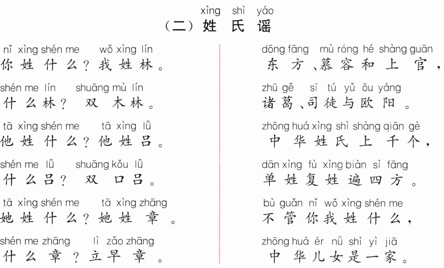 )① 上千个 ② 遍四方 ③ 姓什么 ④ 是一家