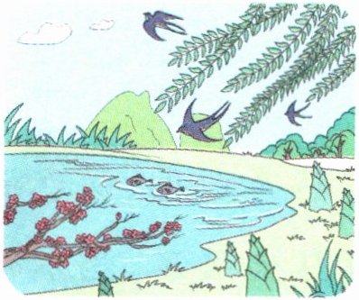 春对夏,秋对冬。池边柳,陌上桑。