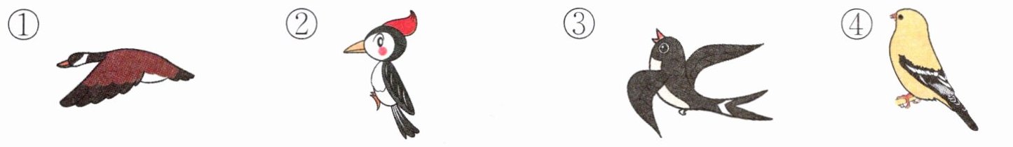 2. ② 解析:从儿歌中“燕舞对莺飞”“青天雁一行”可知答案,并没有提到“啄木鸟”。