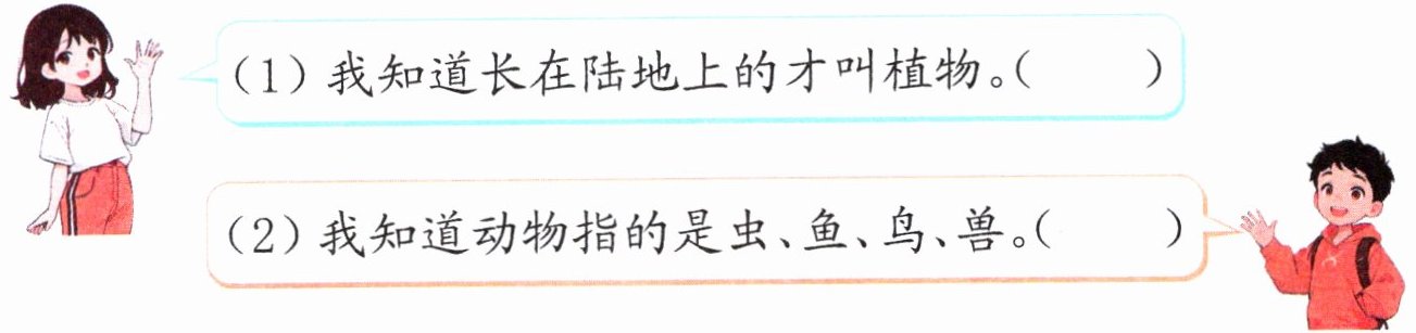 4. 同学们正在交流收获,读一读,在正确的说法后面画“√”。