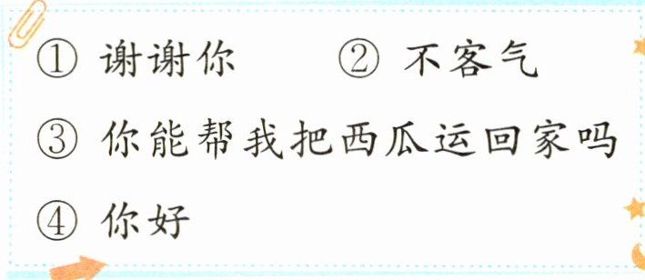 3.(语文要素)假如小猪以礼貌的态度去请小白兔帮忙搬西瓜,小白兔会有什么反应?(填序号) (
