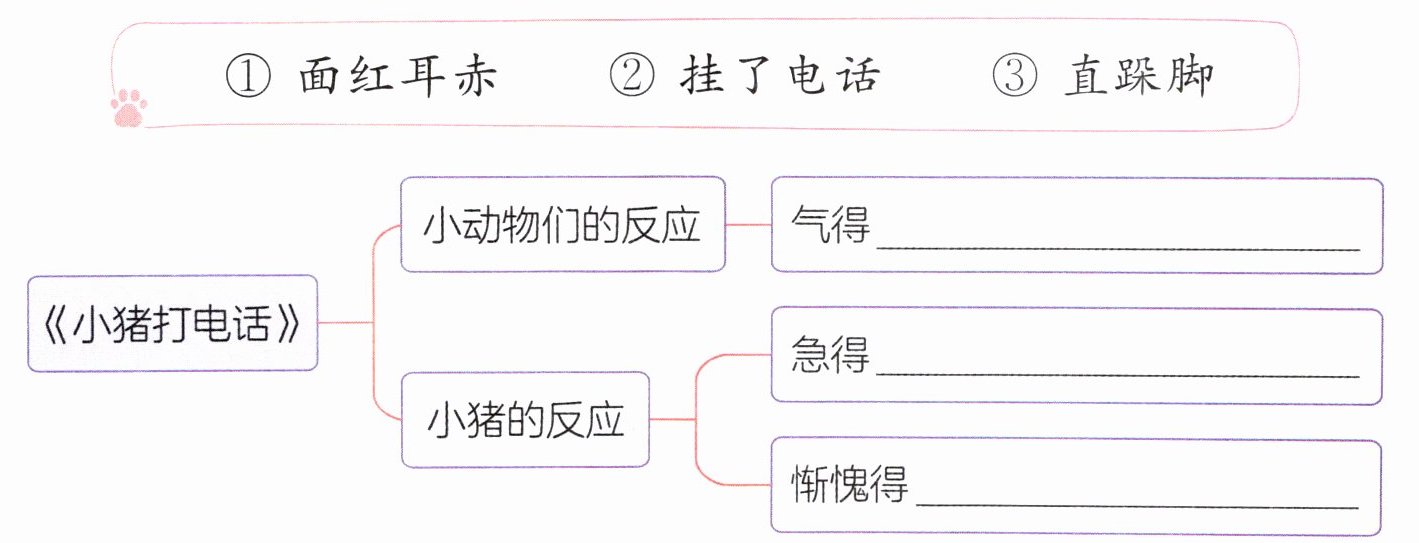 2. ② 解析:根据短文内容可知,小猪分别打电话找小白兔和小象帮忙,可是小猪对小白兔的称呼是“小红眼”,对小象的称呼是“长鼻子”,因为小猪不讲礼貌,乱给别人起绰号,所以小白兔和小象都不想帮忙。