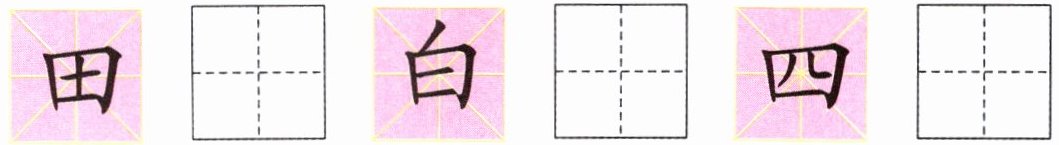 (① 先外后内 ② 先内后外)再封口。答案:1. shí zǔ suàn xíng 卡片 2. 田 白 四 ①