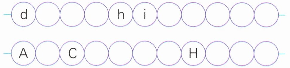 1. 糖果传送带启动啦,按《汉语拼音字母表》的顺序,把小写字母穿成一串,大写字母穿成一串。