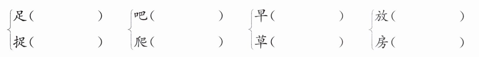 答案:三、示例:足迹 捉虫 好吧 爬山 早上 青草 放生 房子
