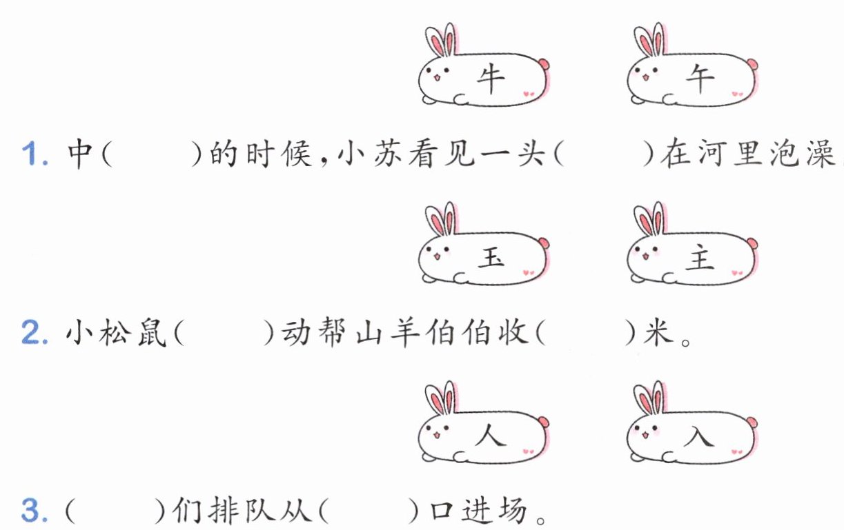 答案:1. 午 牛 2. 主 玉 3. 人 入