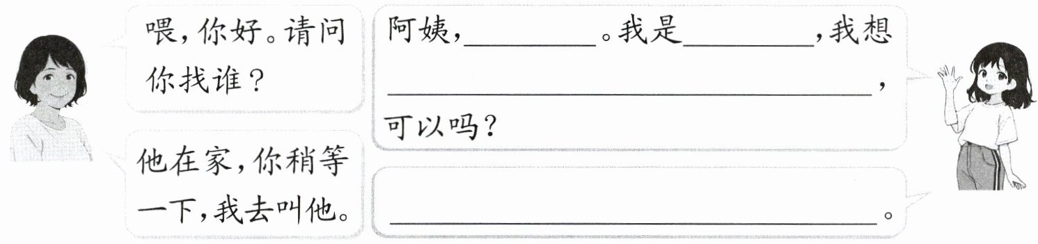 假如你是小文,你想约你的同学小华下午一起去公园拼图,打电话时,是小华妈妈接的电话,你会怎么说呢?想一想,写一写。