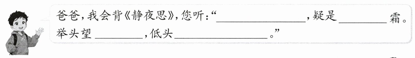 三、小语和爸爸在背诵古诗,请你根据对话,将内容补充完整。(15 分)