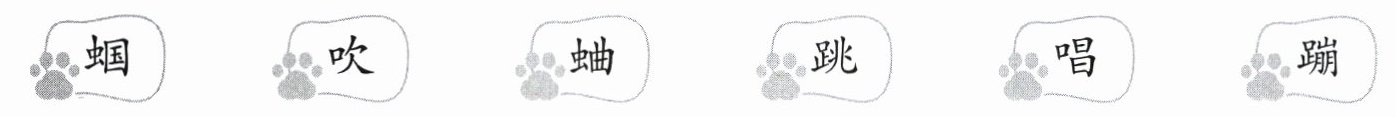 ”在儿歌中画出原因。(1 分)答案:七、1. 口:吹 唱 虫:蝈 蛐 足:跳 蹦