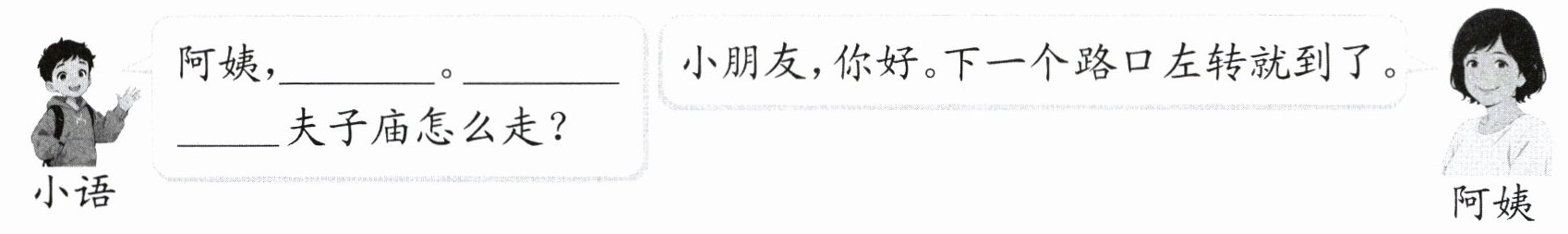 小语想去夫子庙,但他不认识路,于是向路过的阿姨求助。