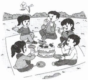 答案:周末,我和小明、小红、小刚、小丽一起去白马湖玩。我们在湖边的草地上野餐,小丽带来了蛋糕,小刚拿出水果,我和小明摆放零食。小鸟在天上叽叽喳喳地唱歌,好像在和我们一起分享快乐。我们笑着、闹着,拍下了很多照片,真是开心的一天!