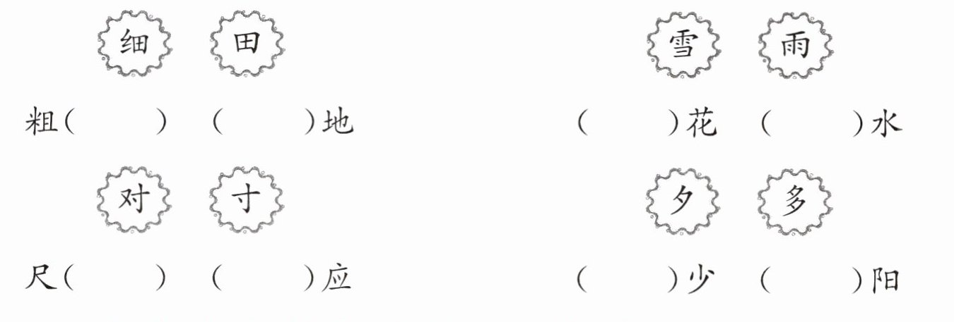 答案:四、细 田 雪 雨 寸 对 多 夕