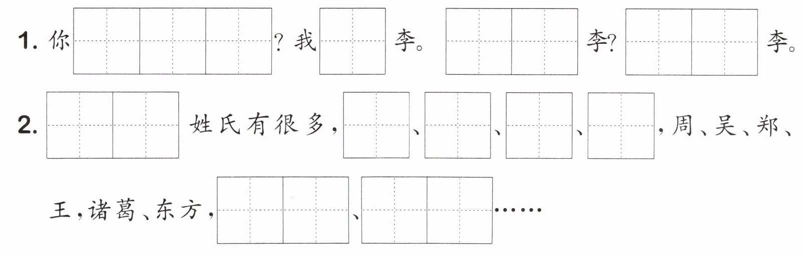 答案:1. 姓什么 姓 什么 木子 2. 中国 赵 钱 孙 李 上官 欧阳