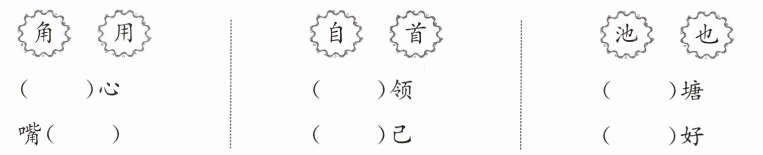 答案:二、首先 池水 早上 采花 牛角 刀尖