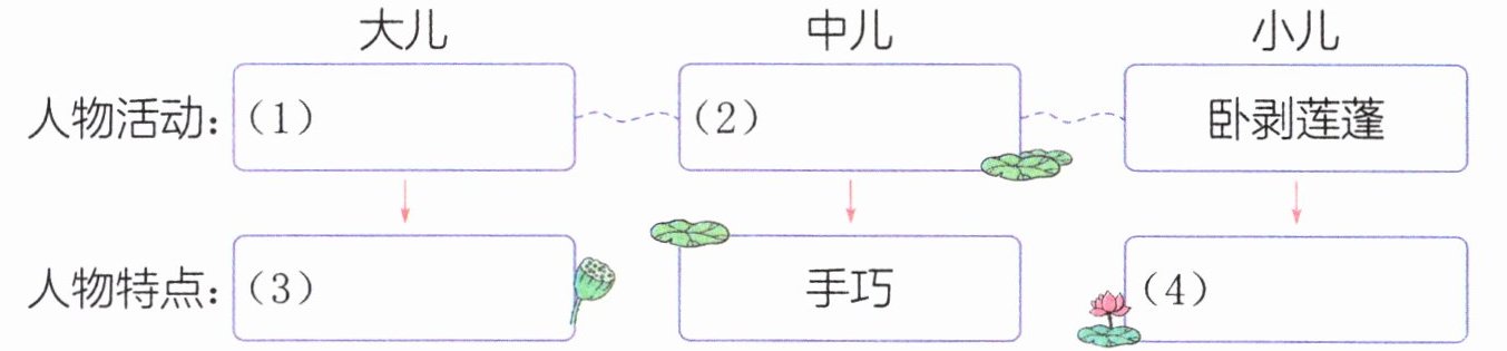 答案:1.(1)锄豆 (2)织鸡笼 (3)勤劳 (4)天真可爱 2. 顽皮、淘气