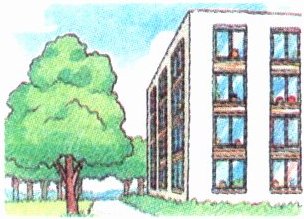 示例:校园里有一棵树,长得跟它旁边的四层教学楼一般高。