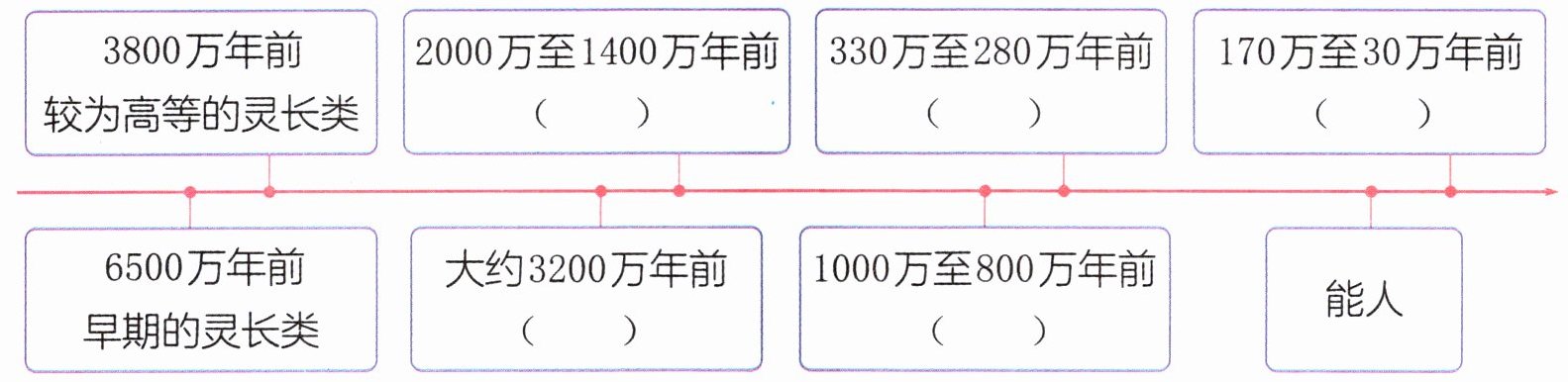 3. 读《人类起源的演化过程》,我能选择恰当的内容完成思维导图。(填序号)