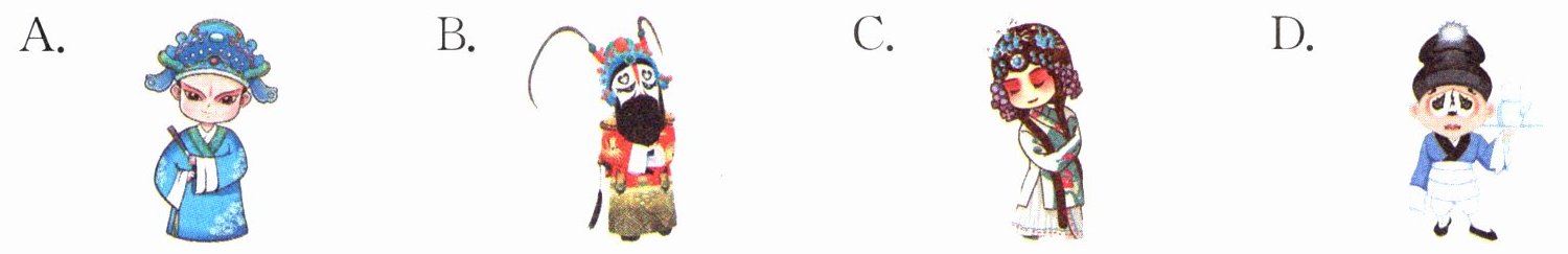 答案:1. B 解析:结合选文一“鹅的步调从容,大模大样的,颇像京剧里的净角出场”可知,鹅的步调像京剧里的净角,净角是京剧表演主要行当之一,其动作一般较为夸张、大气、有派头。A项,从装扮看是小生,小生一般雍容端庄,与鹅出场大模大样的特点不符。B项,从装扮和造型看是净角,其出场通常气势十足、大模大样,与鹅的出场特点相符。C项,从装扮看是旦角,不符合鹅出场的特点。D项,从装扮看是丑角,丑角动作多滑稽搞笑,与鹅出场特点不同。