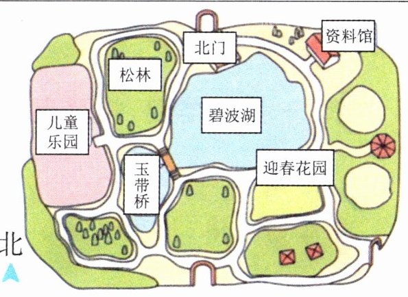 答案:四、示例:1. 从迎春花园游览结束,绕着碧波湖往西,就会看见一座架在湖上的小桥,这便是玉带桥 2. 过了玉带桥往西行,一直走到头,就到了孩子们最喜欢的儿童乐园。