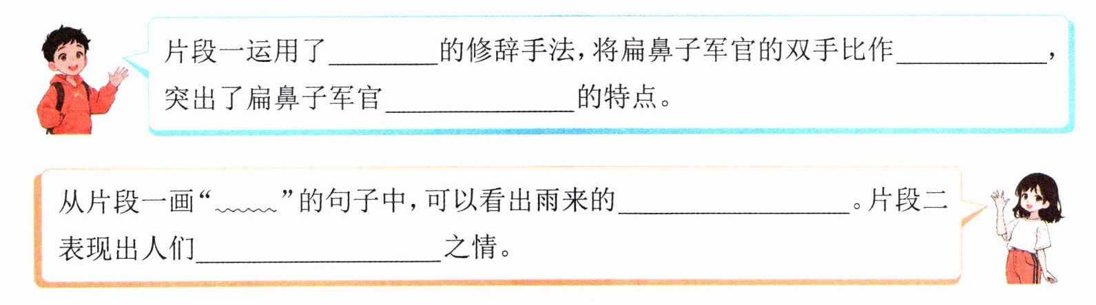 3. (批注阅读)片段二描写了还乡河的景色,这样写有什么作用?请将片段右侧的批注补充完整。