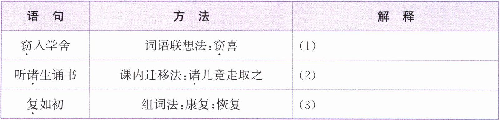 2. (1)窃学忘牛 (2)恢复如初 3. 热爱学习