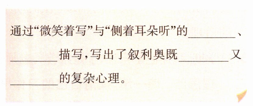 2. 神态 动作 欢喜 怕被发现 3. 叙利奥仿照父亲笔迹写名册 继续做下去 懂事 体贴父亲