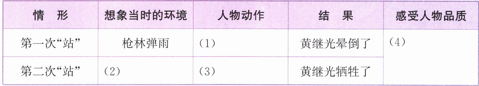 4.(阅读要素)关注片段中对黄继光的动作描写,联系全文,填写下表。