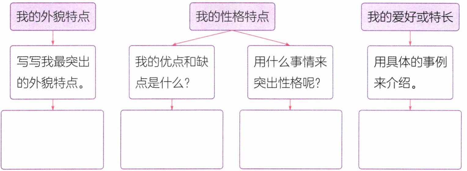 三、[理清思路]根据下面的思维导图,填一填自己要介绍的内容。