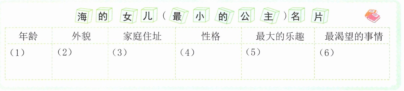 二、海的女儿(最小的公主)给你留下了怎样的印象? 请填写下面的人物名片。