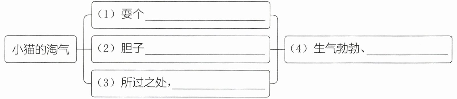 1. (思维导图)作者从哪些方面写了小猫的淘气?补全思维导图。(4 分)