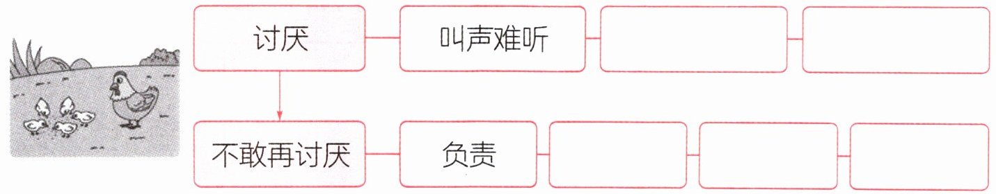 。答案:五、第一行:欺软怕硬 居功炫耀 第二行:慈爱 勇敢 辛苦 讨厌 不敢再讨厌 母鸡是一个无私无畏、日夜操劳的伟大母亲,作者被母鸡身上表现出的母爱所震撼,认识到天地间所有的母亲都是英雄