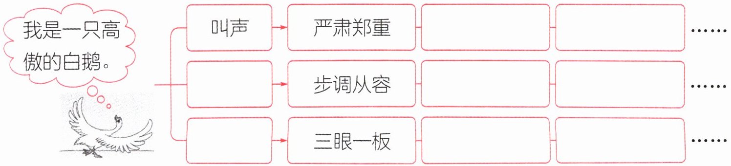 五、白鹅的高傲具体表现在哪些地方?根据课文内容,完成思维导图。