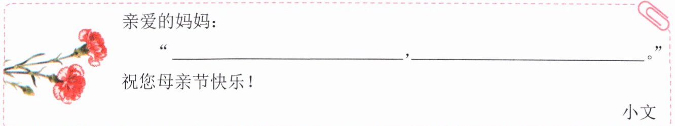 ?(2)小文还想给妈妈送贺卡表示感恩,请选用恰当的诗句填写贺卡。